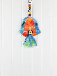 Evil Eye Fused Glass Wall Hanging in Hand Shaped, Small Size.